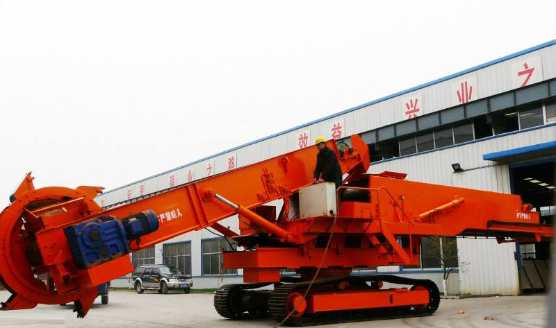 利用斗輪連續取料,用機上的帶式輸送機連續堆料的有軌式裝卸機械。它是散狀物料(散料)儲料場內的專用機械,是在斗輪挖掘機的基礎上演變而來的,可與卸車(船)機、帶式輸送機、裝船(車)機組成儲料場運輸機械化系統,生產能力每小時可達1千立方。斗輪堆取料機的作業有很強的規律性,易實現自動化??刂品绞接惺謩?、半自動和自動等。